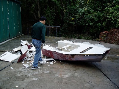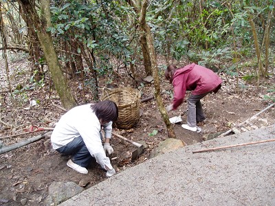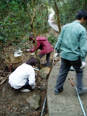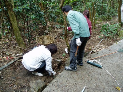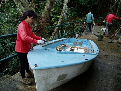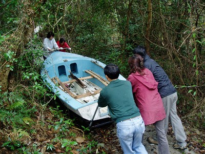今天工作營的目標可真大,不單要為小路旁的水池”通波仔”(渠道淤塞,要挖去樹葉及沙土),還要把放在沙灘上的一隻mirror棄掉。本以為這是不可行的事,在主的保守下,雖然天一直下?毛毛雨,但不減我們的對工作的熱誠,到下午四時半,我們已合力把任務完成了,哈利路亞!