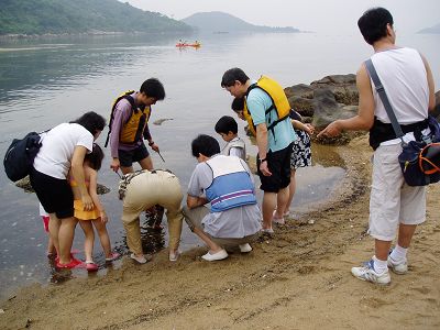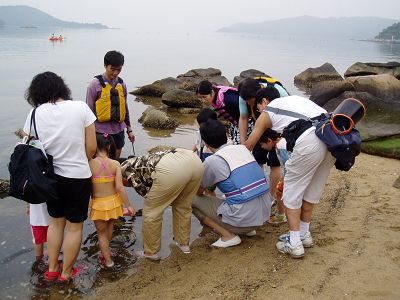 天氣雖然不好,但不減我們的興致,小朋友都看到水中的生物,如寄居蟹、海兔、海星等,還可以乘助小船到珊瑚區看珊瑚呢!那天雖然沒有燦爛的太陽、沒有在水中暢泳,但大家都盡興而返。
