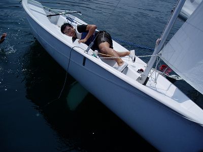 風帆入門班為期兩日。這兩天天空萬里無雲,參加者雖然身處猛烈陽光下,但仍專注學習風帆技術,如capsize、gybing,活動後教練與學員回顧學過的技巧,大家都願意作出回意,相信學員們都享受這兩天的活動。