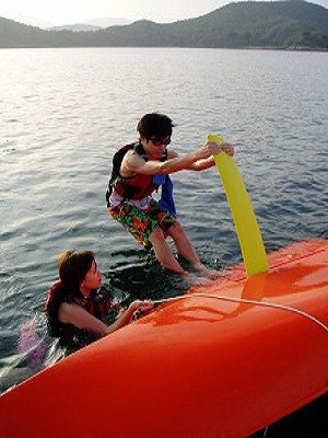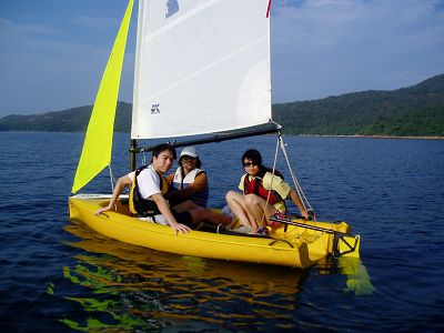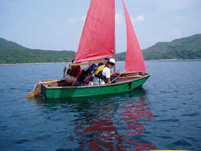 五月的確是個出船的好日子,陽光並不猛型,在涼風吹拂下,八個來自大專的朋友享受了兩天學習風帆的樂趣。