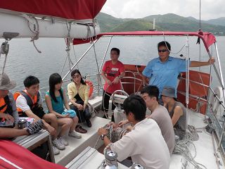為了讓海谷的同工有互相認識的機會,我們和生命前線合辦了一日的義工風帆同樂日。這天風和日麗,大伙兒由海下灣出發,目的地是白沙灣,整個行程需時大半天,大家在船上一起學習駕駛大型帆船的技巧,一起唱詩,一起享受神創造的天和海。