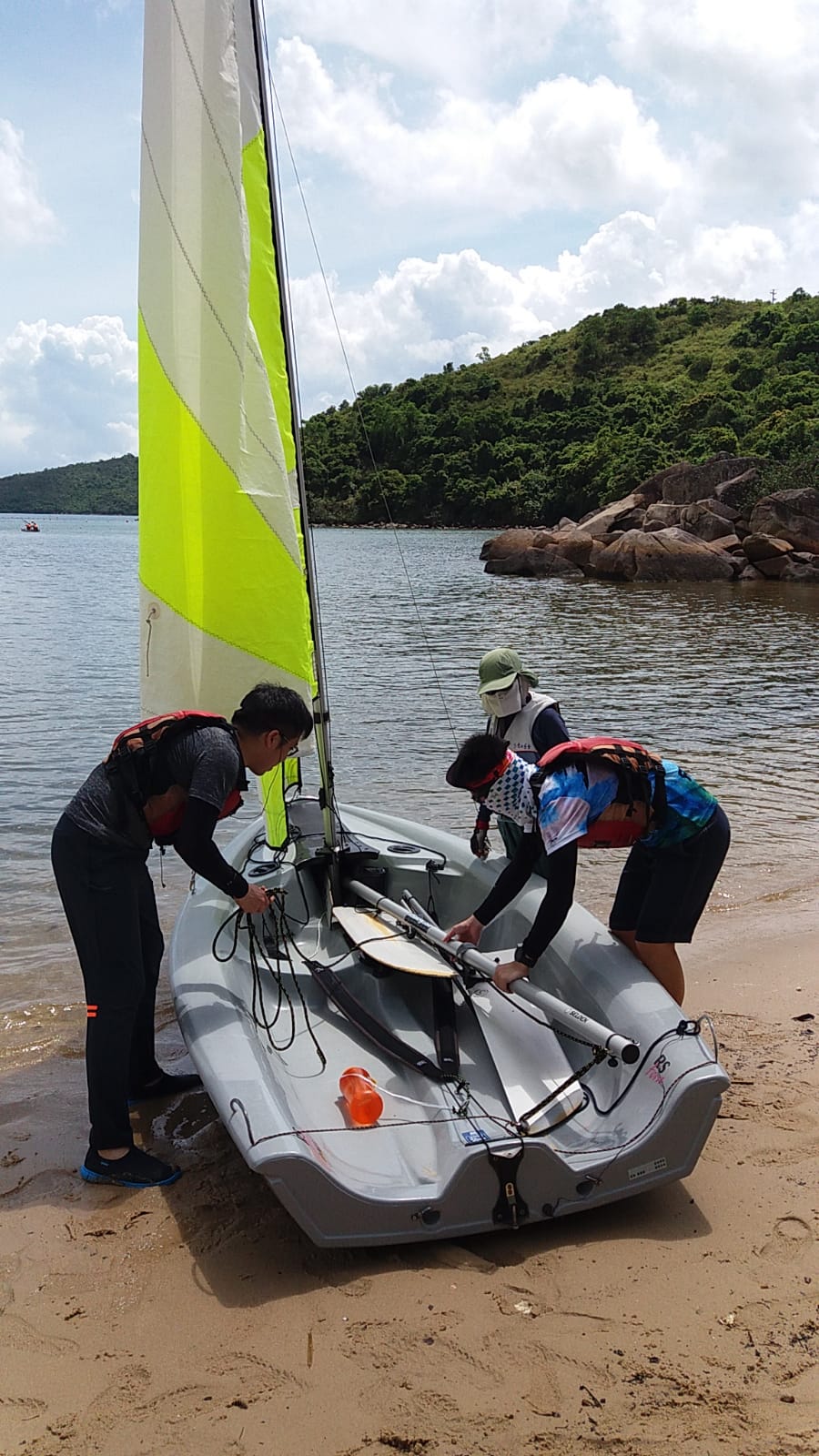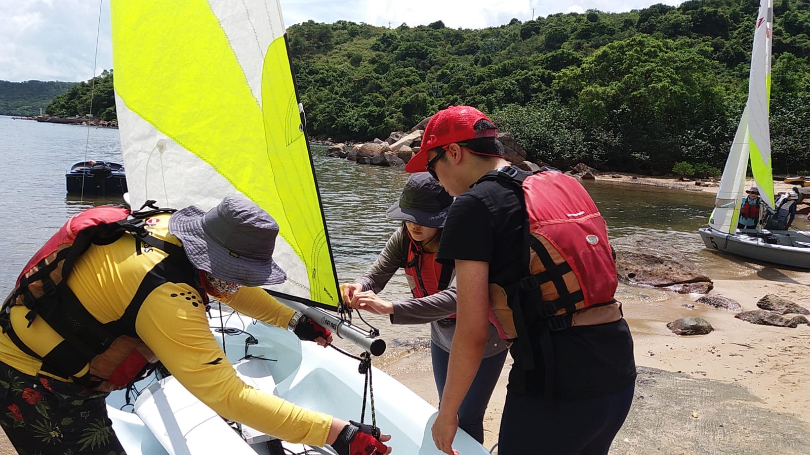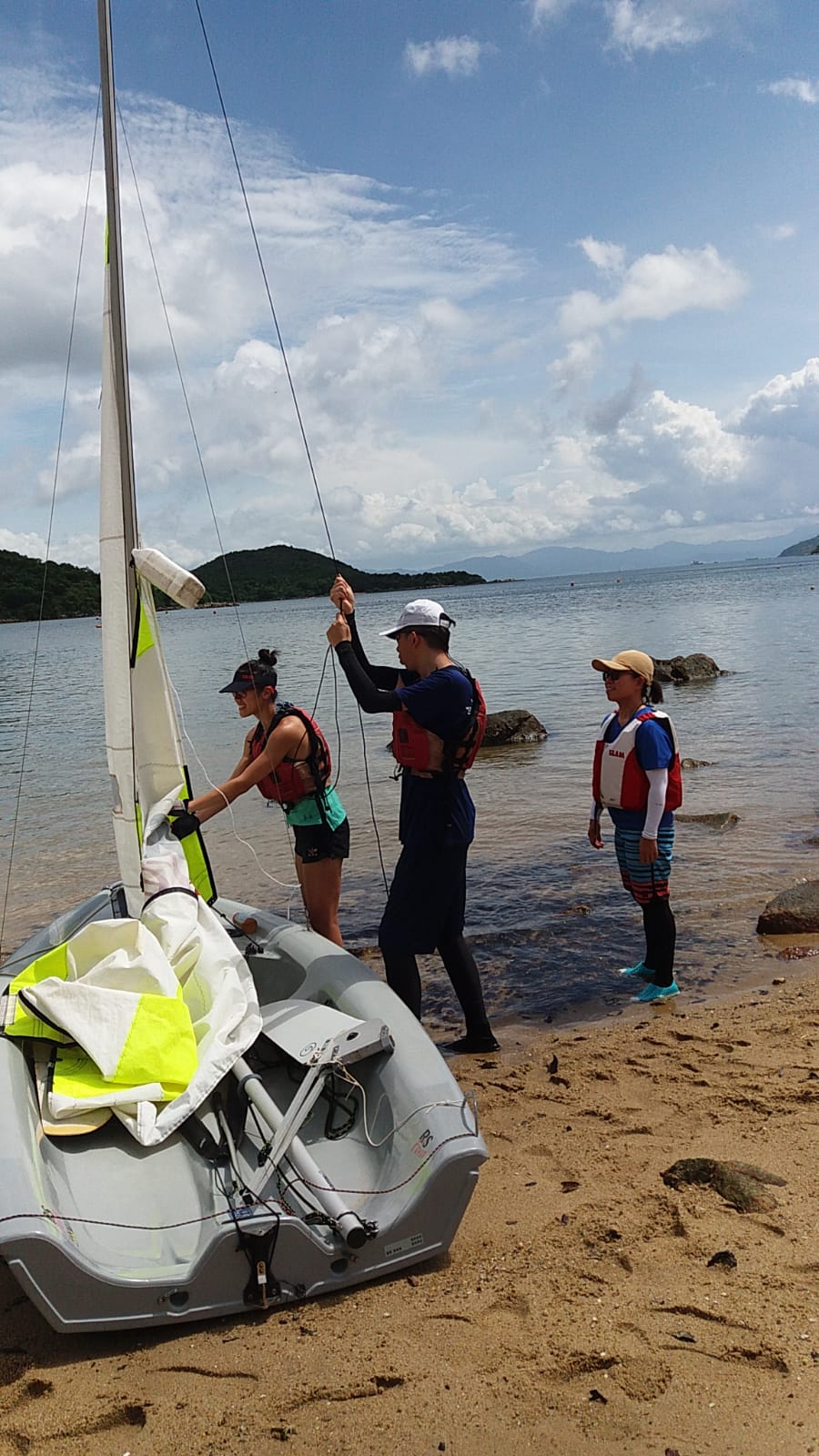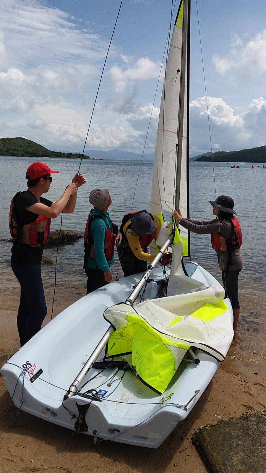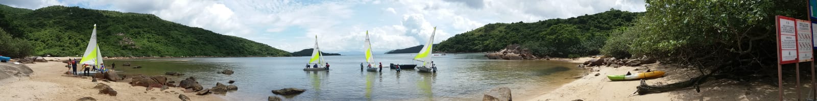 課程第一天雷雨交加,幾乎不能進行水上活動,幸好有段時間好轉,讓學員可以進行 "翻艇" 訓練,稍嘗風帆的樂趣。第二天天氣逆轉,雖然風級不算大,但也可讓學員體驗到御風而行的快感!