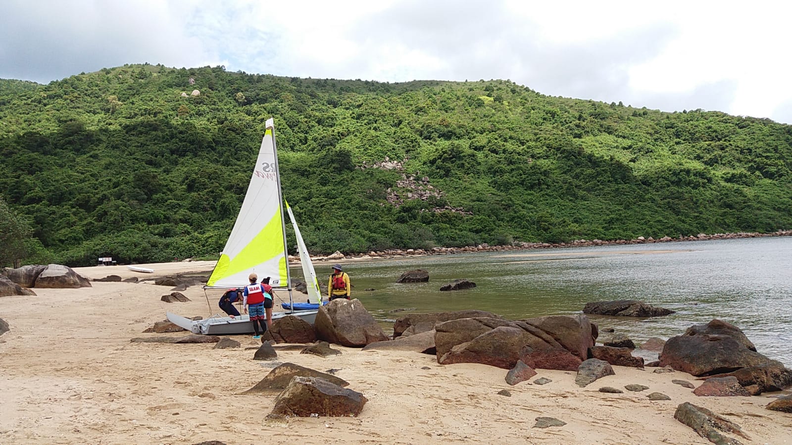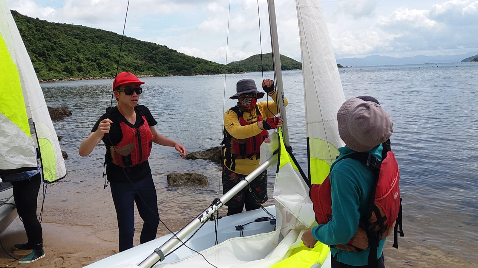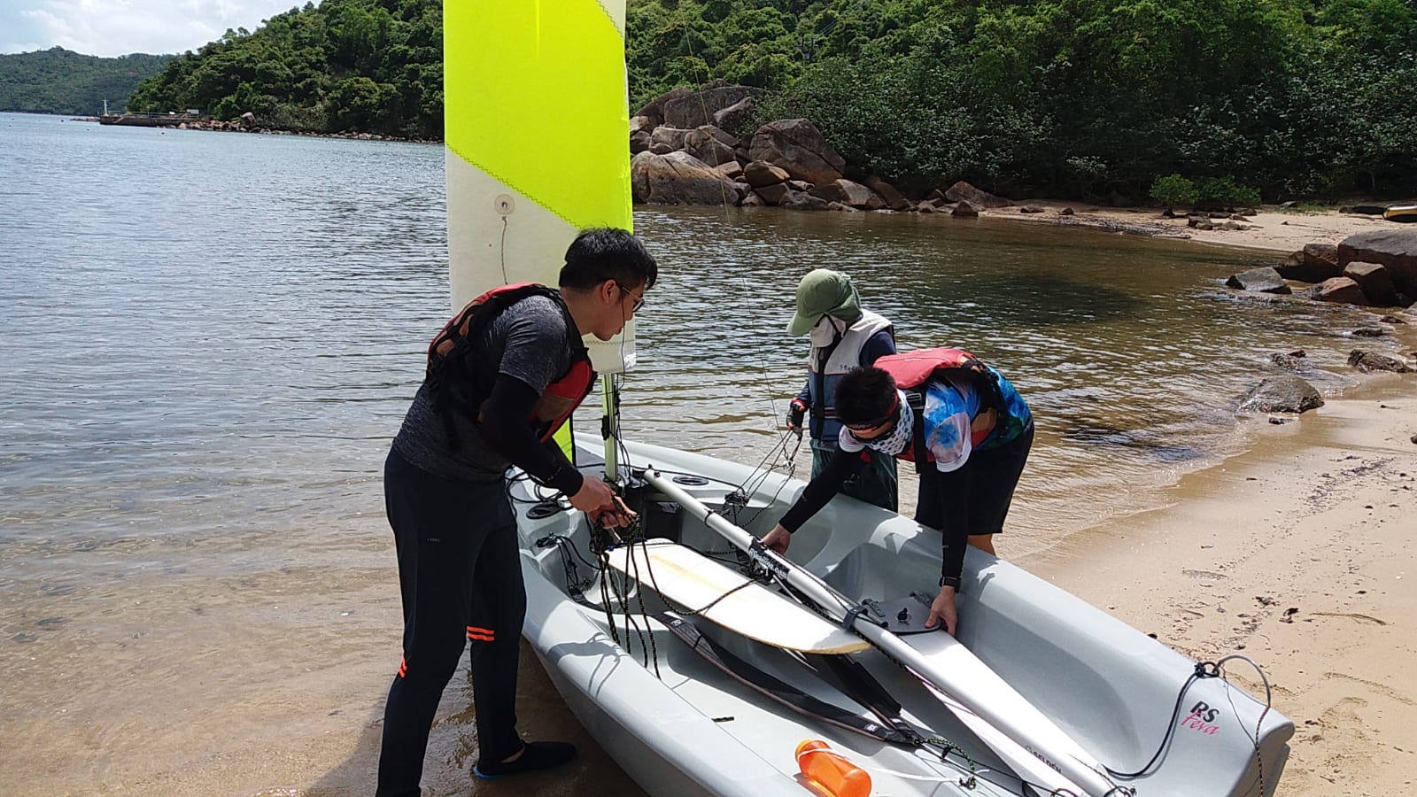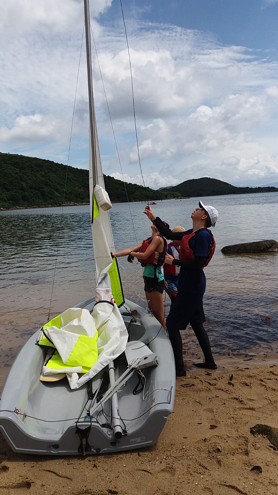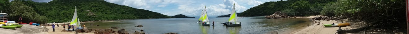 課程第一天雷雨交加,幾乎不能進行水上活動,幸好有段時間好轉,讓學員可以進行 "翻艇" 訓練,稍嘗風帆的樂趣。第二天天氣逆轉,雖然風級不算大,但也可讓學員體驗到御風而行的快感!