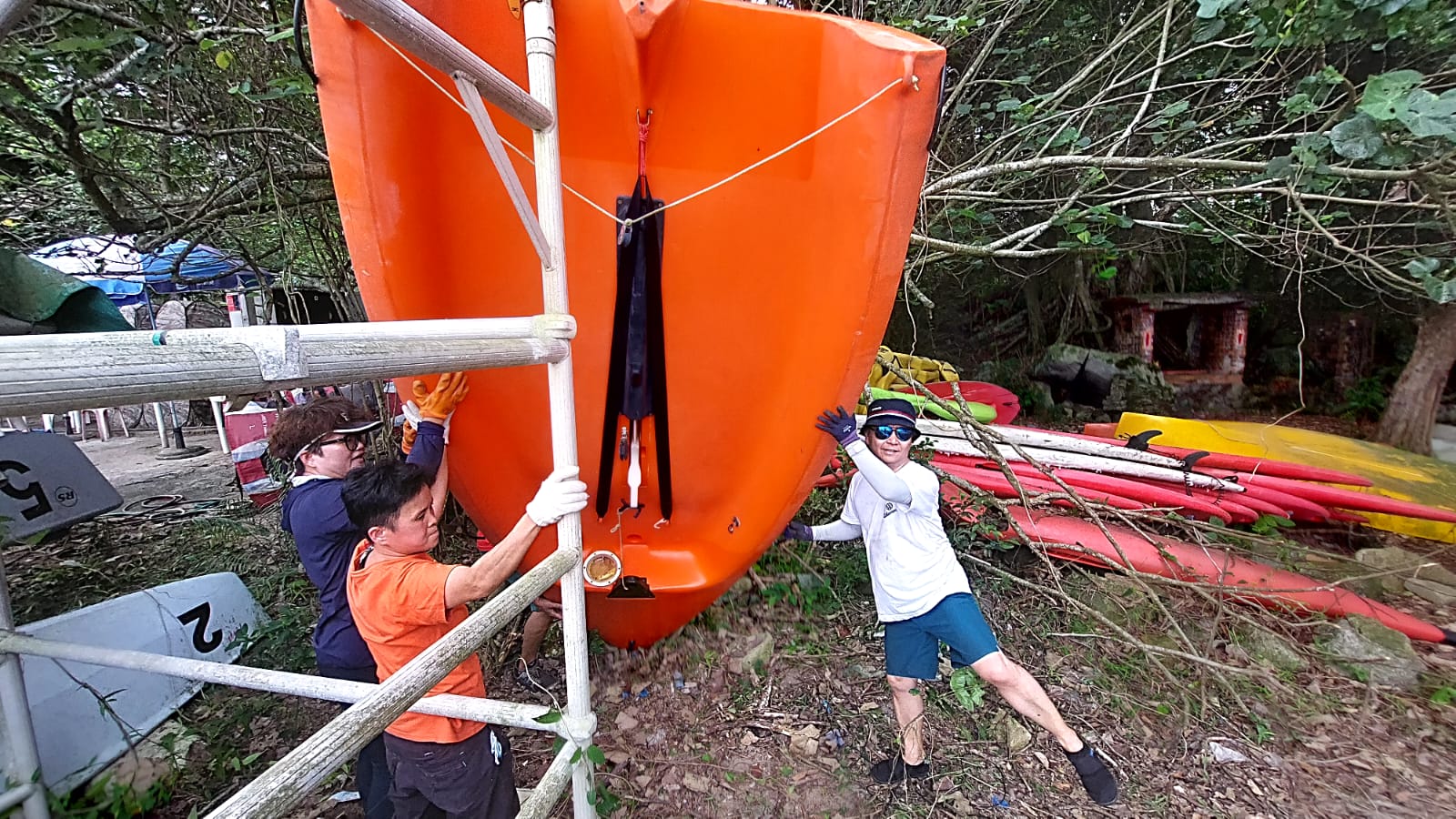 其是位於海邊的船架。